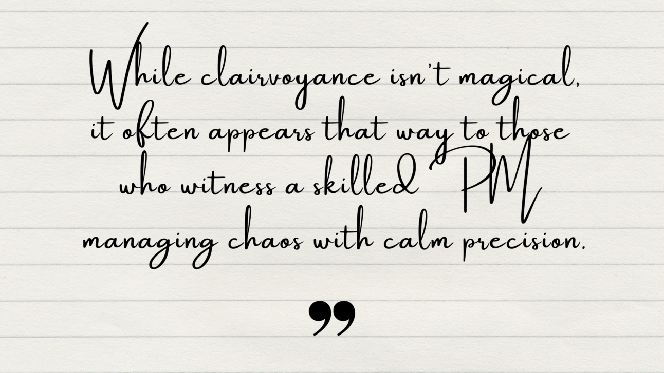 Among the various skills a PM must cultivate, I could argue that "clairvoyance"—the ability to anticipate challenges and foresee potential outcomes—is one of the most vital.
